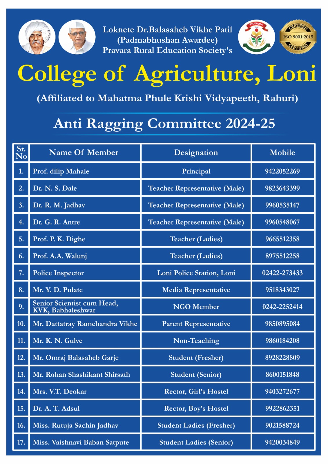 The Pravara Rural Education Society (PRES), established in July 1964 under the visionary leadership of Padmashri Dr. Vithalrao Vikhe Patil, was founded with twin objectives:
