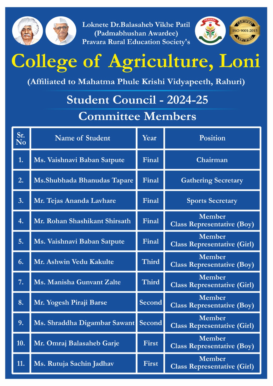 “I am very happy to visit the great institution who is serving the society with many colleges in Agri Biotechnology, Engineering & medical sciences. Started by great visionary Shri Padmshree Vithalrao Vikhe Patil. I Wish & congratulate all the members of the great Education society a grand success in their endeavour.”