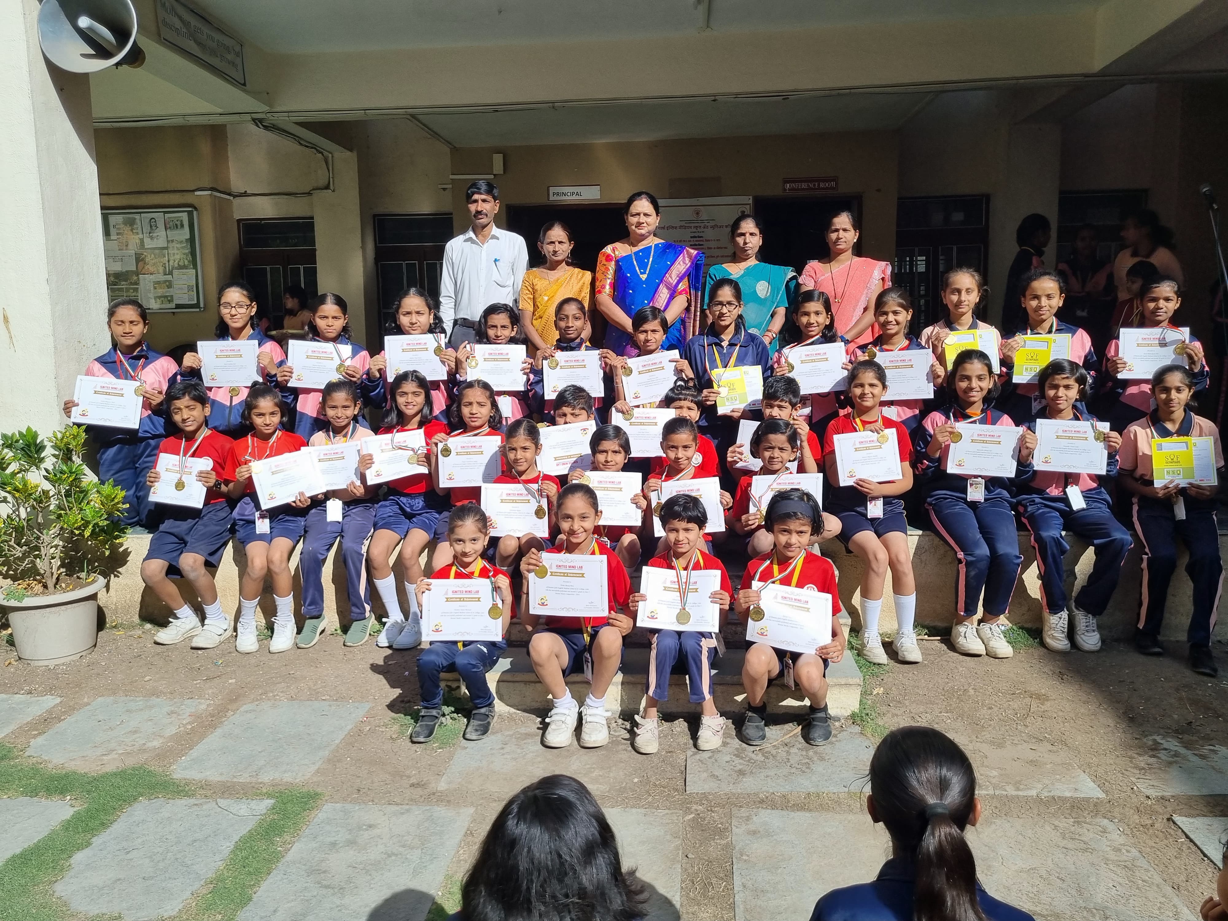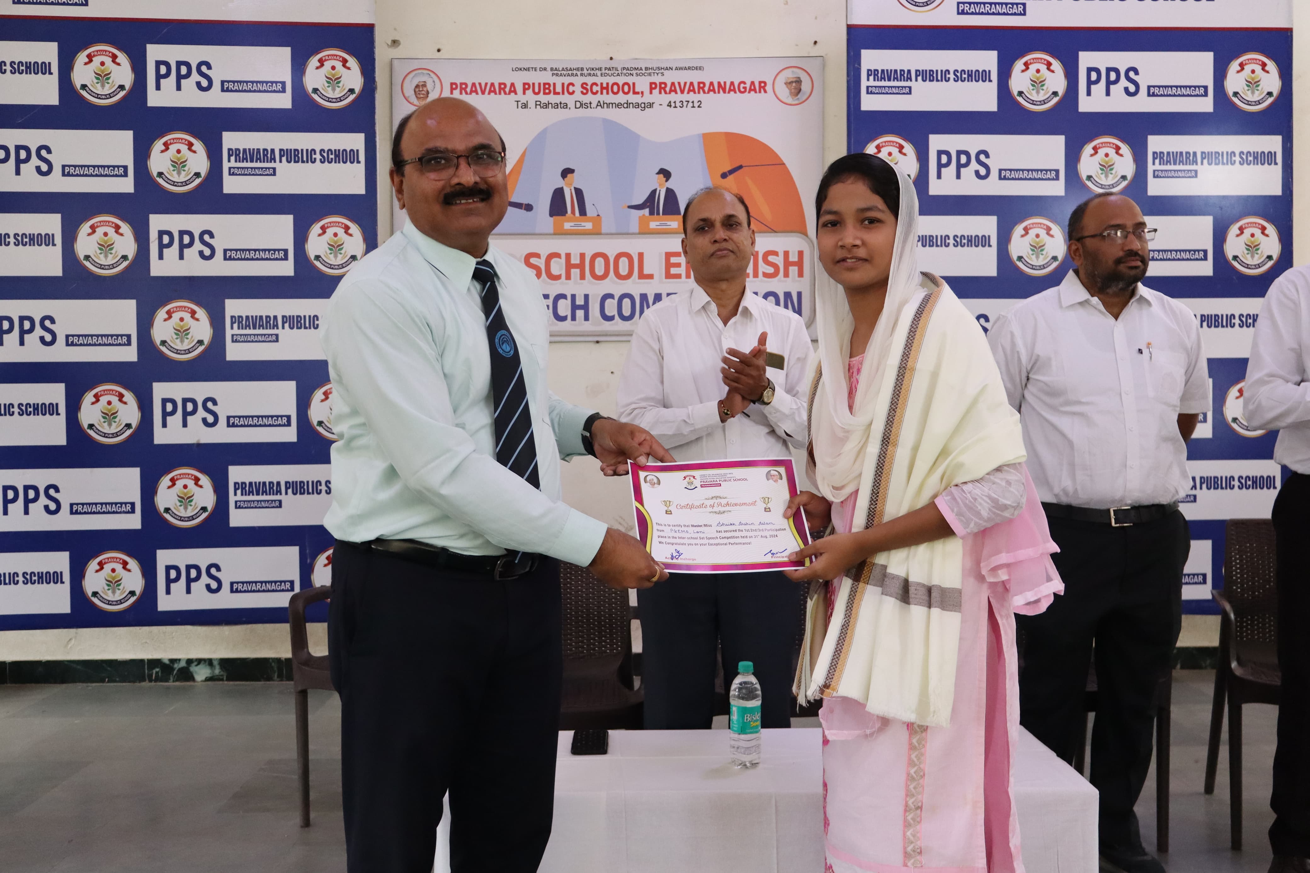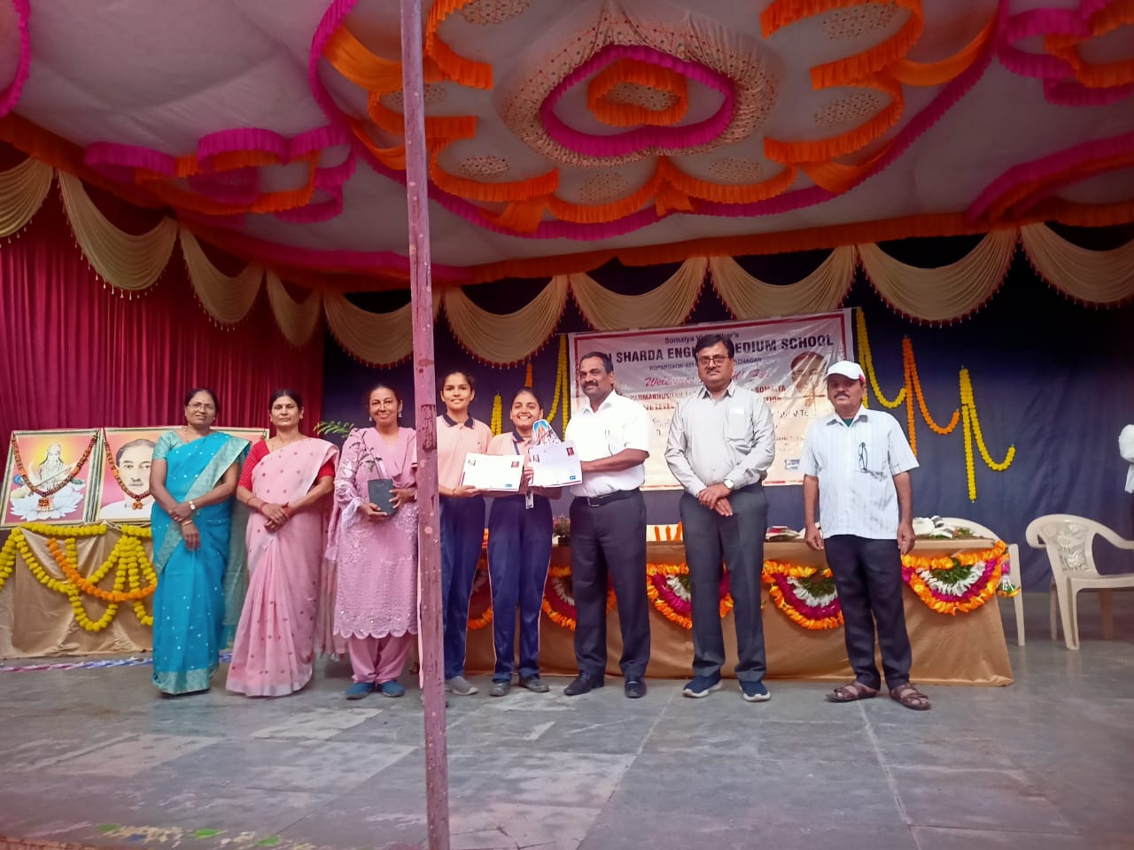 State Level Inter school Hindi Elocution Competition held at Shri Sharda English Medium School, Kopargaon Miss Mishra Anjali Baidyanath and Miss Lahamge Shraddha Gorakshnath from class IX have won consolation prize. They have been awarded by a cash prize of Rs. 1000/- and a Trophy and Certificate and brought victory to the school.