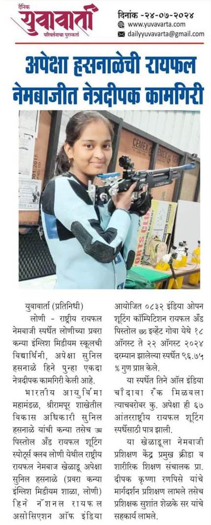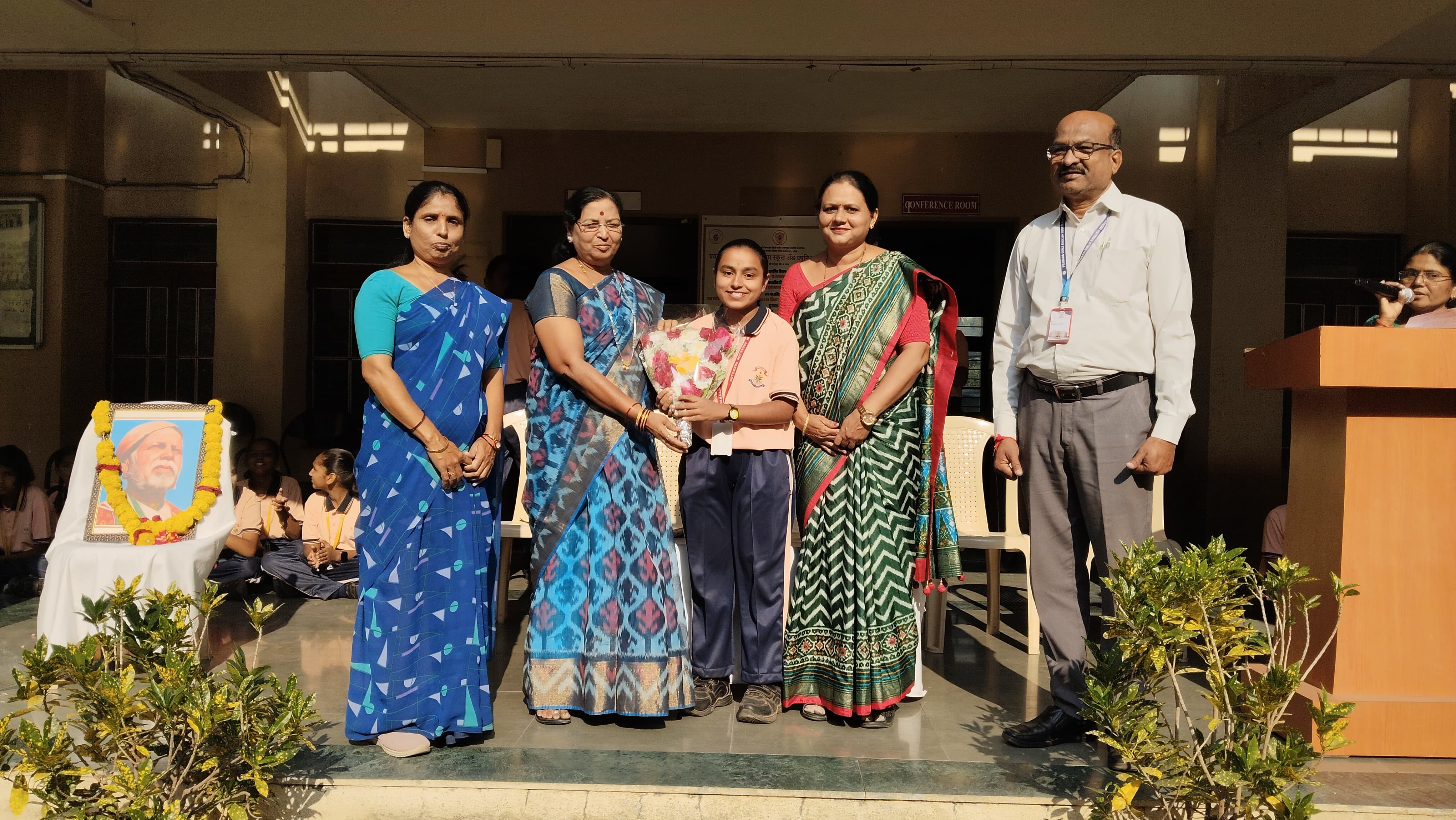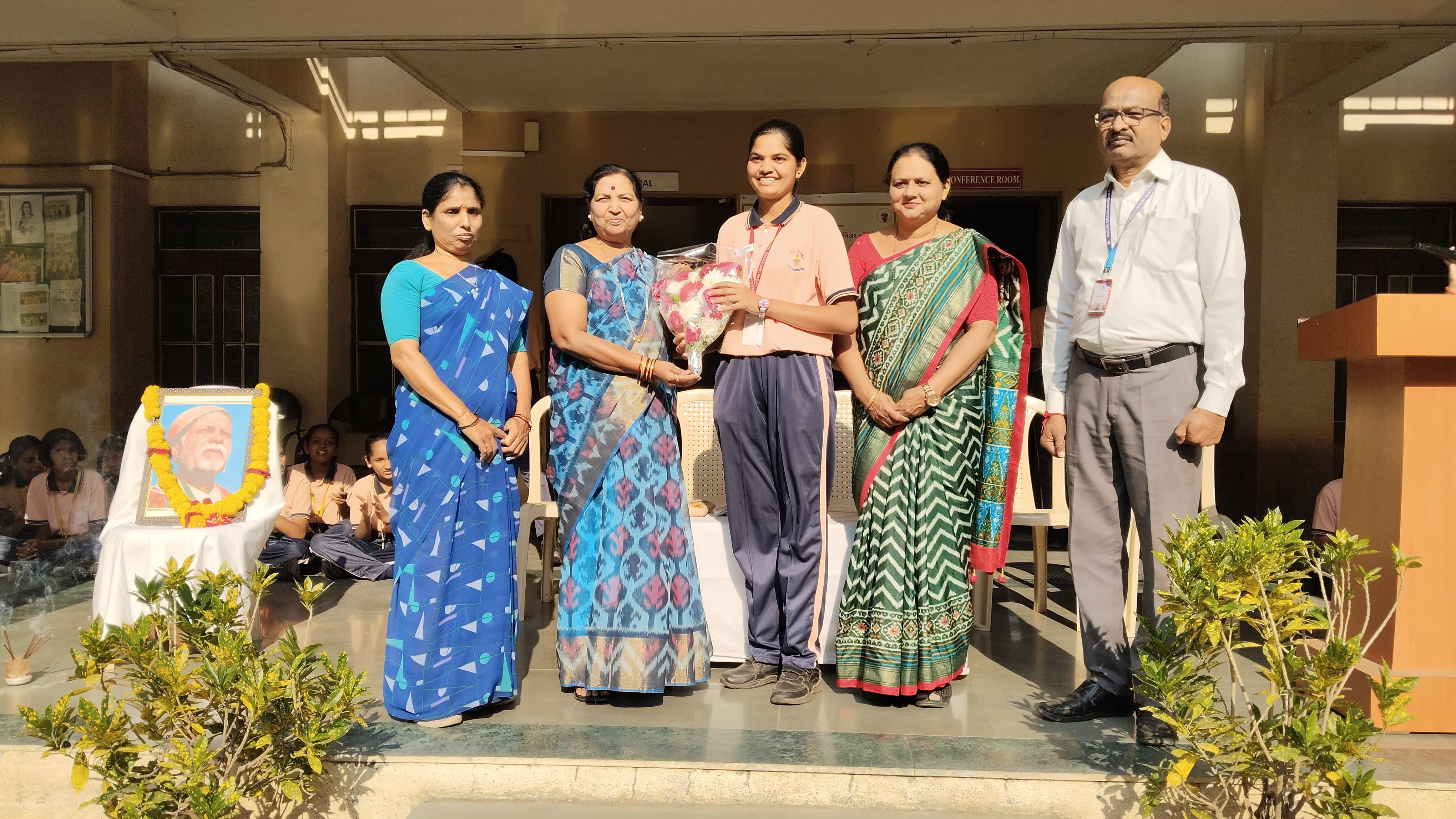 State Level Inter school Hindi Elocution Competition held at Shri Sharda English Medium School, Kopargaon Miss Mishra Anjali Baidyanath and Miss Lahamge Shraddha Gorakshnath from class IX have won consolation prize. They have been awarded by a cash prize of Rs. 1000/- and a Trophy and Certificate and brought victory to the school.
