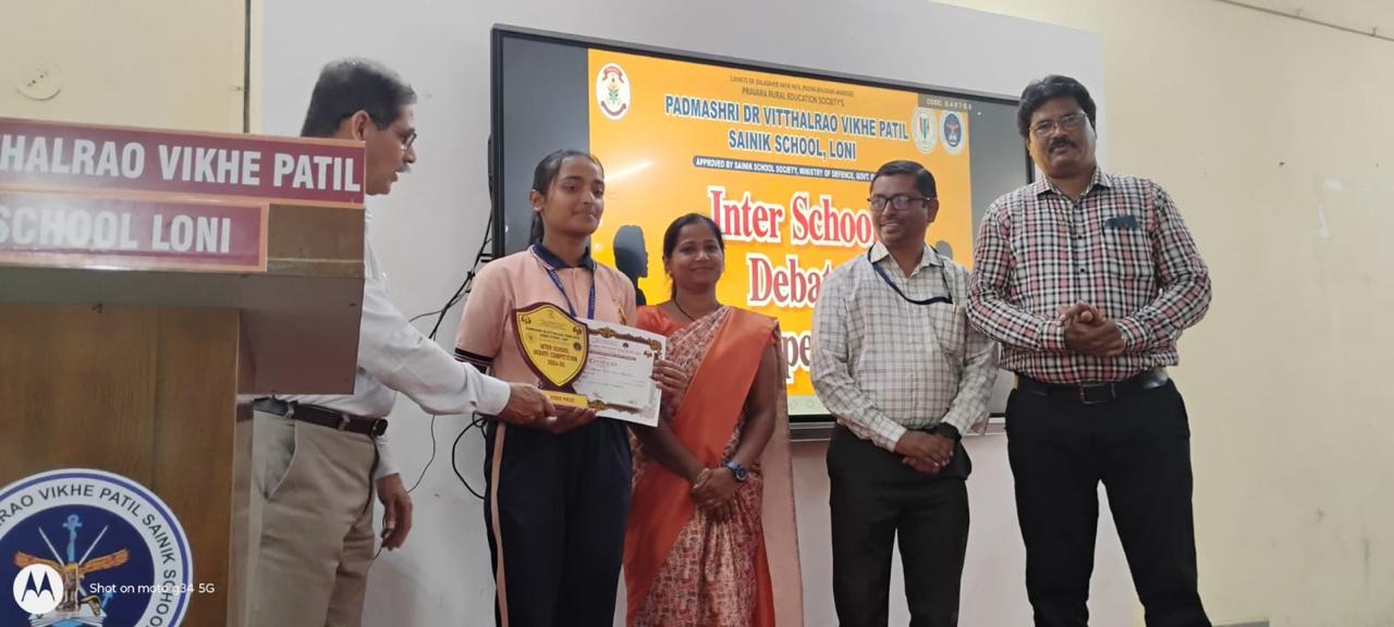 Inter School English Debate Competition was held at Sainik School, Loni Our School has Secured First Position. Our two students Miss.Turakane Shrivali Sandip and Miss.Gorde Shashwati Dipak brought Victory to the school.